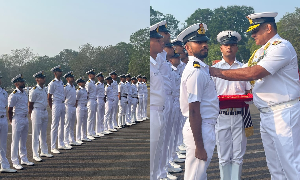 The passing-out parade was reviewed by Vice Admiral Sanjay Bhalla, Flag Officer Commanding-in-Chief of the Eastern Naval Command, who presented the graduating pilots with their Golden Wings